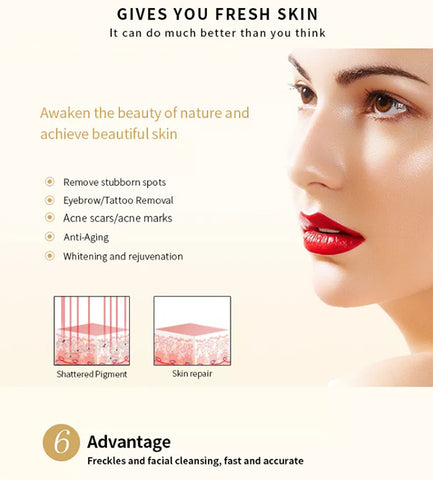 The Picosecond Laser uses ultra-short pulses (one trillionth of a second in length) to hit the melanin with a great pressure, the melanin shatters into tiny dust-like particles. Because the particles are so small, they are more readily absorbed and eliminated by the body. It is a quick and easy non-surgical ,non-invasive laser skin treamtent for the body.